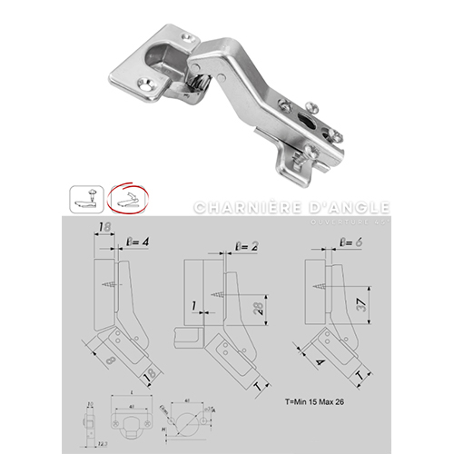 CHARNIERE D’ANGLE ACIER NICKELE, OUVERTURE 45°